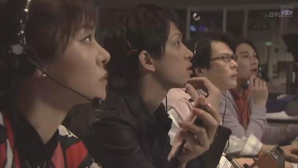 泉谷しげる飾演松坂源五郎,節目燈光師。田中哲司飾演米倉信三,切換導演(SW)。和田正人飾演竹内昂,節目音效。(右下圖左1)森脇英理子飾演浦沢瞳,時間監控(TK)。