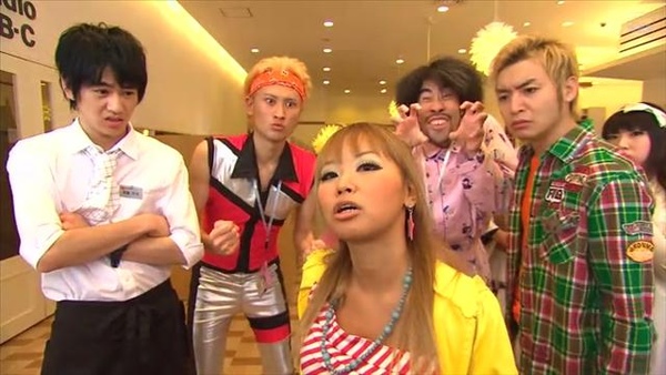 千里親衛隊成員:(左二)渡辺敬介飾演南沢、(右三)なすび飾演西郷、(圖中)浜田ブリトニー飾演ブリトニー